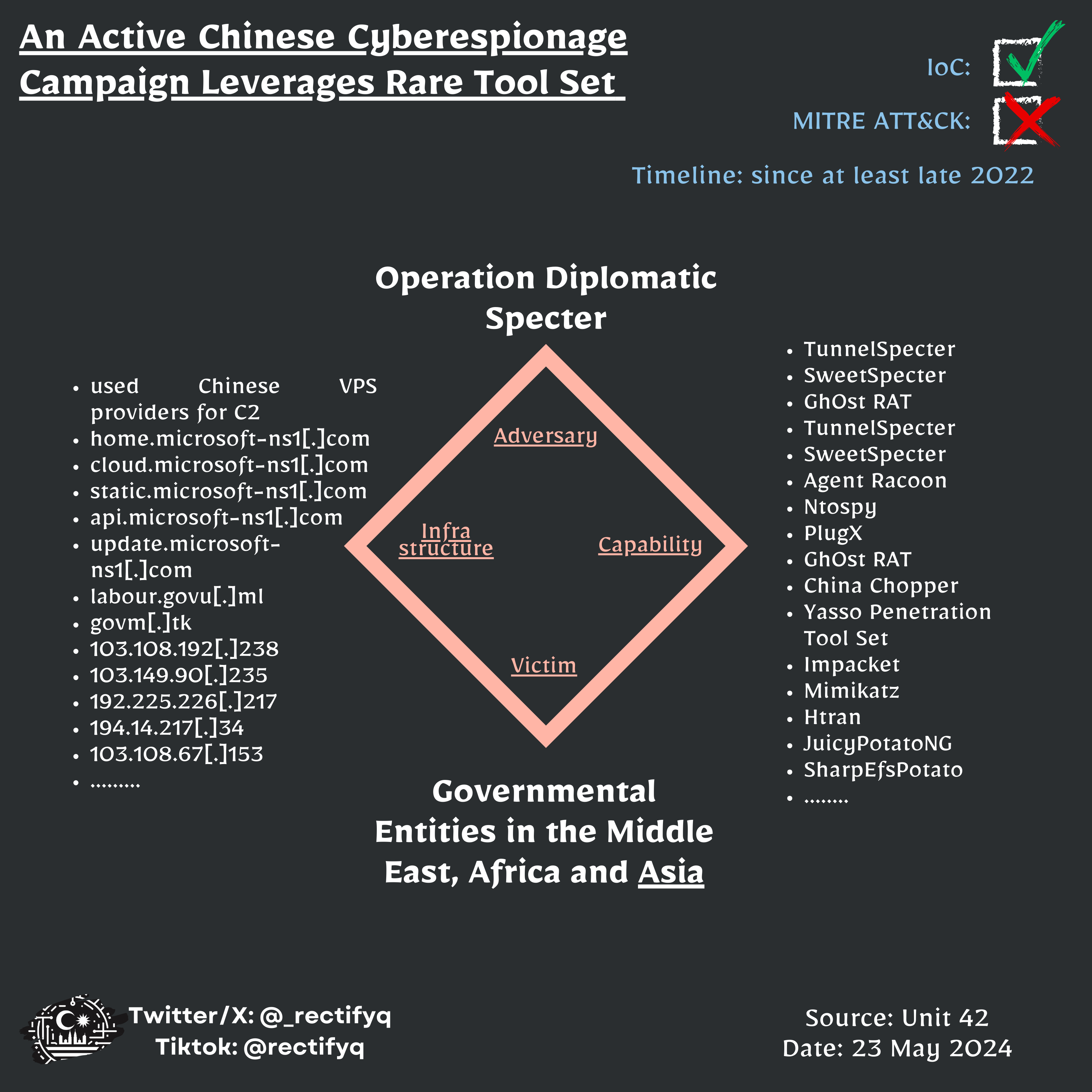 📃Title: Operation Diplomatic Specter: An Active Chinese Cyberespionage Campaign Leverages Rare Tool Set to Target Governmental Entities in the Middle East, Africa and Asia